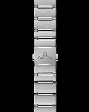 6 o'clock position. The hands, OMEGA logo, Constellation star and diamond holders