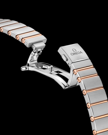 scratch-resistant sapphire crystal. The hands, OMEGA logo, Constellation star