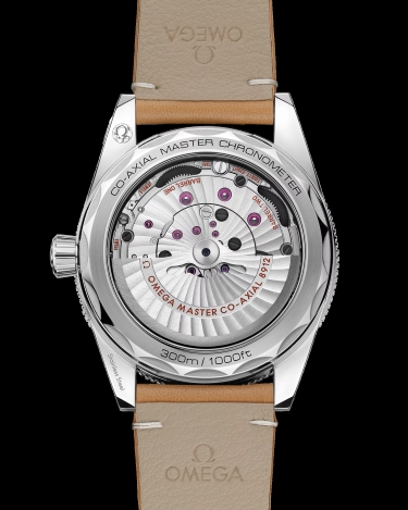 crystal caseback, enabling a clear view of the OMEGA Co-Axial Master